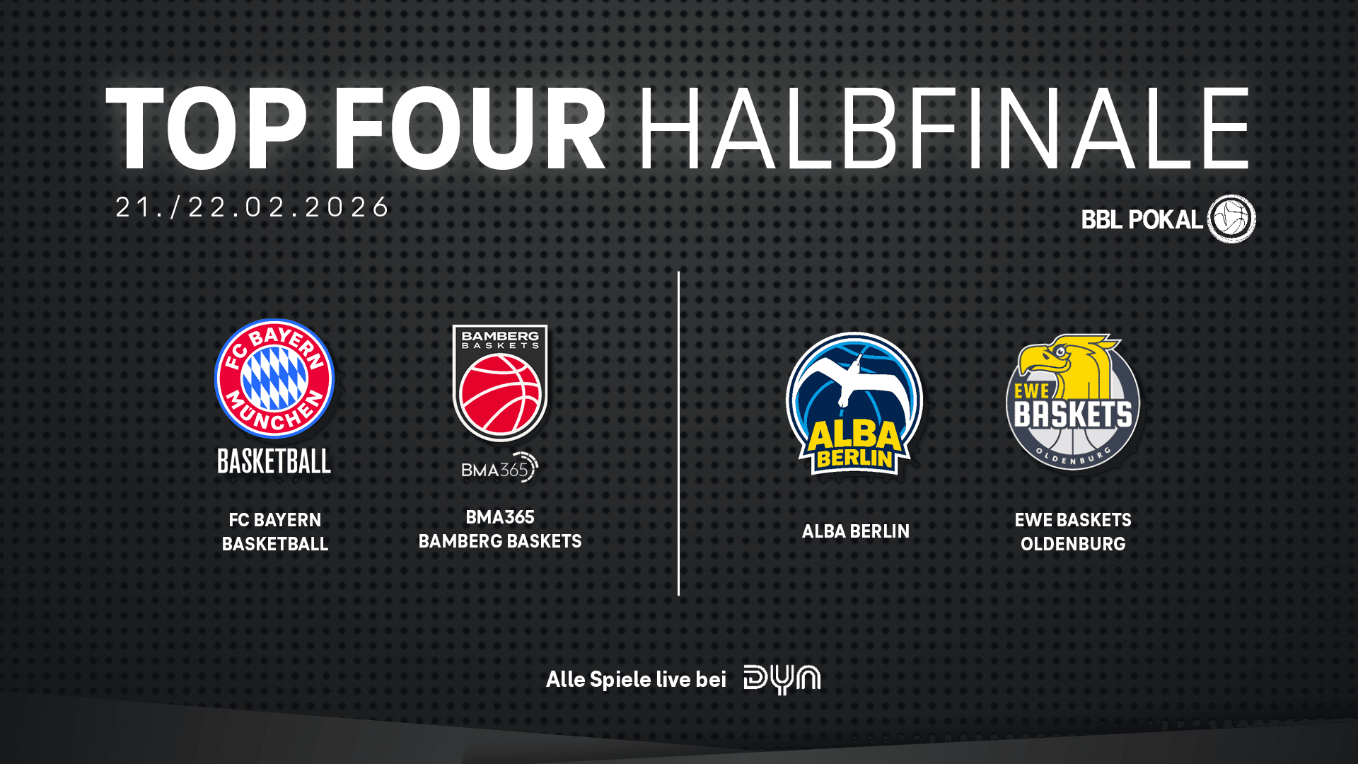 Im Lostopf befanden sich neben den BMA365 Bamberg Baskets und dem FC Bayern Basketball auch die EWE Baskets Oldenburg und ALBA BERLIN. Diese vier Teams haben sich in den vorangegangenen Partien den Einzug ins TOP FOUR 2026 erkämpft und damit die Chance auf den ersten Titel der Saison.